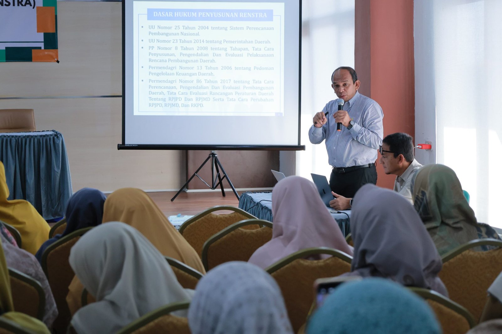 Pada hari kedua, materi disampaikan oleh Dr. Muhammad Abrar, SE, M.Si., dari Program Studi Ekonomi Pembangunan dan Perencanaan Universitas Syiah Kuala (USK). Ia menekankan pentingnya pendekatan berbasis data dalam perencanaan pembangunan serta perlunya integrasi antara Renstra perangkat daerah dengan kebijakan pembangunan nasional dan provinsi.