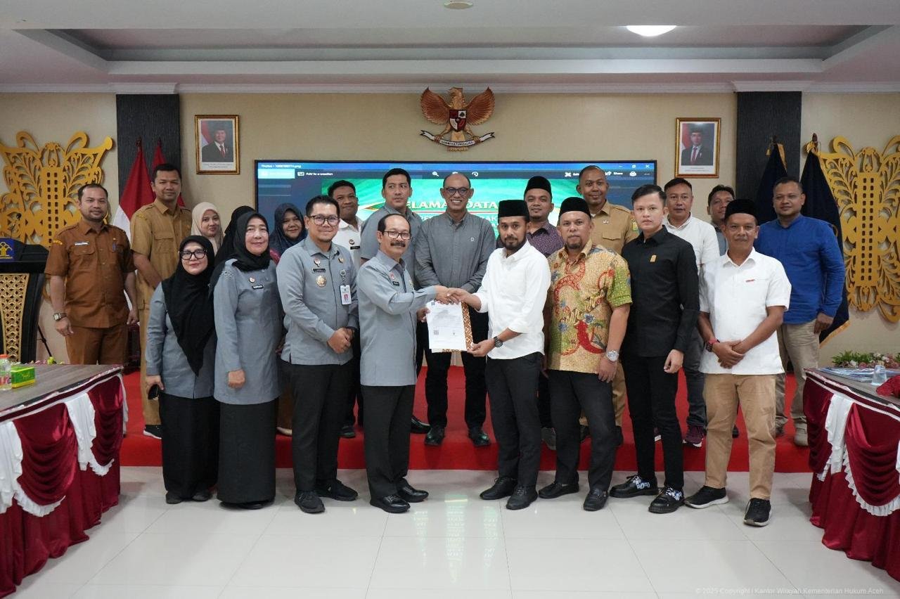 Pembahasan tersebut berlangsung dalam rapat harmonisasi, pemantapan, dan pembulatan konsepsi bersama Kantor Wilayah Kementerian Hukum Aceh di Aula Bangsal Garuda, Kanwil Kemenhum Aceh, Banda Aceh, Selasa (31/3/2026).