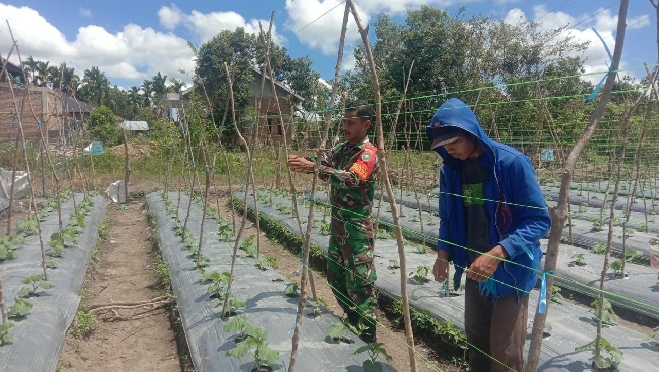 Babinsa yang dikenal akrab dengan warga ini sedang membantu Bapak Sofyan, salah satu petani setempat, dalam perawatan kebun mentimunnya. Tak hanya membantu secara fisik, Babinsa juga memberikan arahan dan semangat kepada para petani agar rutin merawat tanaman, termasuk membersihkan gulma yang bisa mengganggu pertumbuhan.