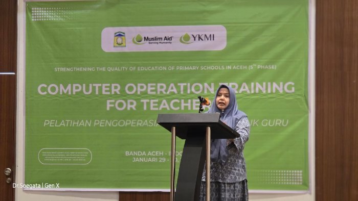 AKSARAKATA.ID, BANDA ACEH – Pelaksana Tugas (Plt) Kepala Dinas Pendidikan dan Kebudayaan (Kadisdikbud) Kabupaten Aceh Besar Rahmawati SPd, MSi, secara resmi membuka kegiatan Computer Operating for Teacher (COT) yang digelar untuk meningkatkan kompetensi digital para guru, di Ayani Hotel, Banda Aceh, Kamis (29/1/2026).