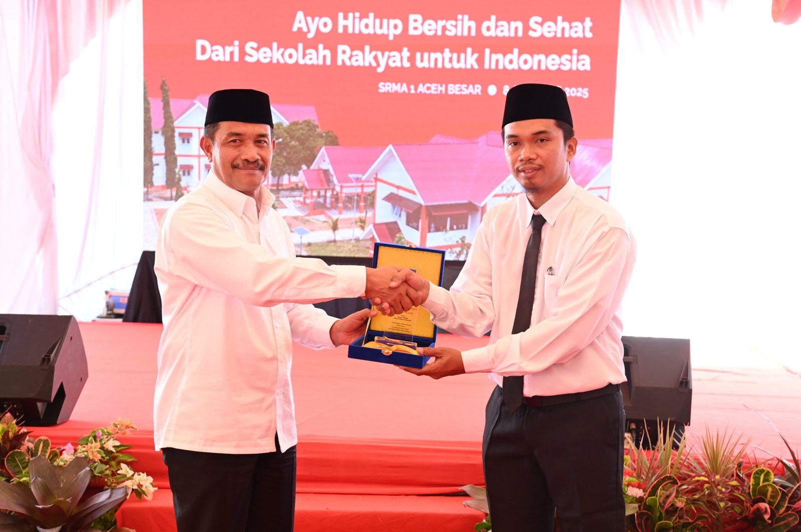 Sebelum peninjauan fasilitas Sekolah Rakyat dilakukan, Wakil Bupati Aceh Besar ikut menyerahkan cinderamata dan menyaksikan aneka kegiatan semarakkan HUT RI Ke-80 yang diprakarsai siswa Sekolah Rakyat, mulai dari Penayangan Video SR, Praktek cuci tangan yang benar dan edukasi Hidup Sehat serta Pemilahan Sampah. (**)